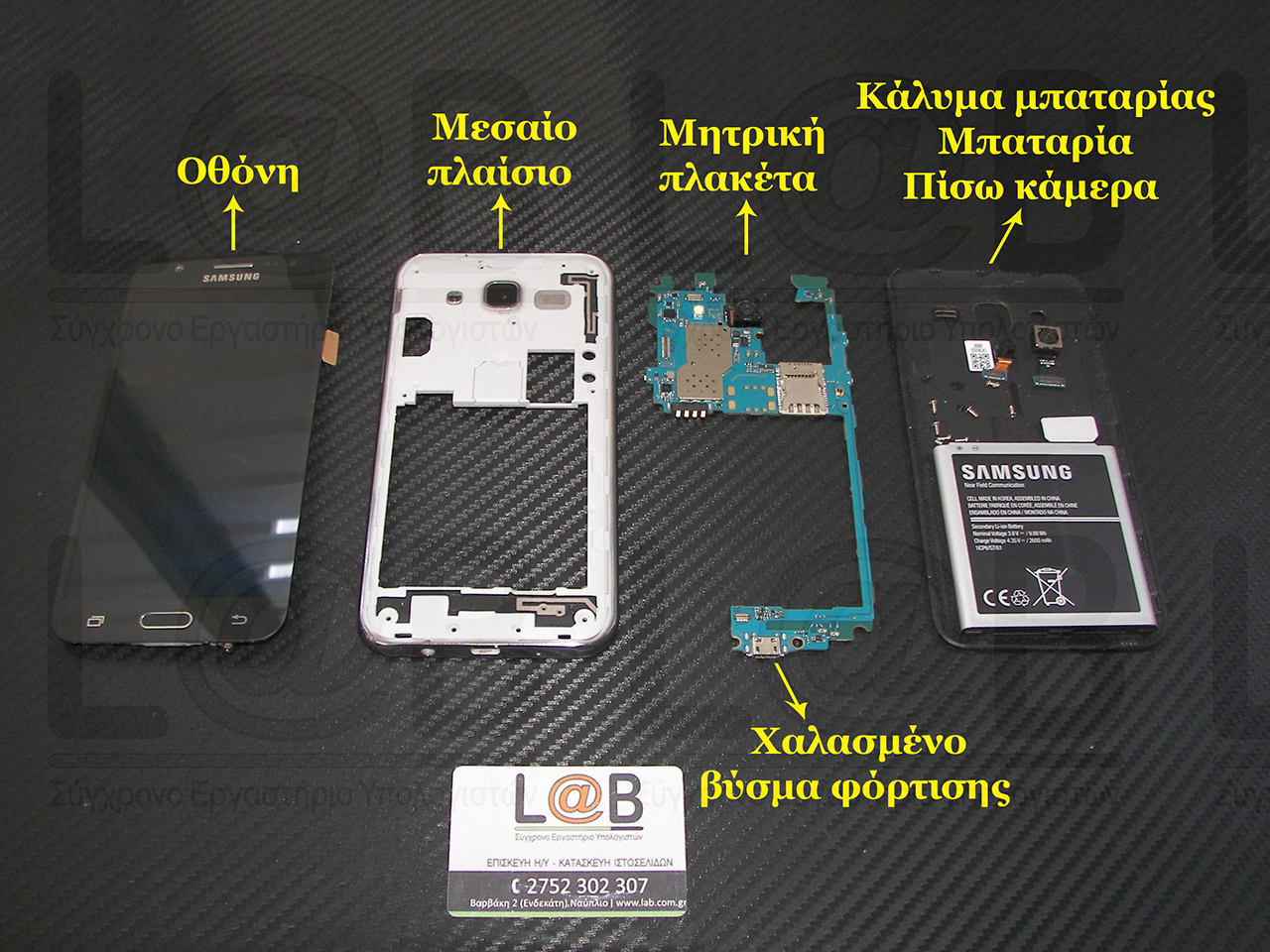Στο τηλέφωνο Samsung Galaxy J500 της φωτογραφίας είχε καταστραφεί το βύσμα της φόρτισης, με αποτέλεσμα να μην μπορεί να φορτιστεί η μπαταρία και συνεπώς να μην μπορεί να χρησιμοποιηθεί η συσκευή.