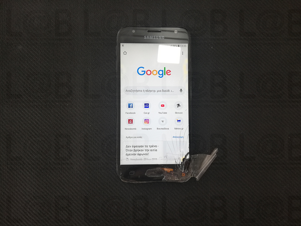 Η αντικατάσταση της οθόνης έγινε στο εργαστήριό μας με γνήσιο ανταλλακτικό της Samsung και το τηλέφωνο ήταν και πάλι σαν καινούριο.