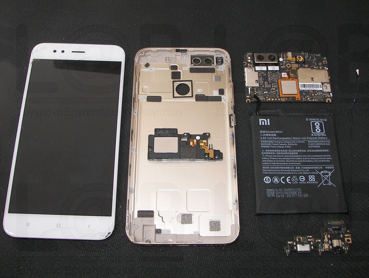 Έτσι και στο τηλέφωνο Xiaomi Mi A1 της φωτογραφίας, έγινε αντικατάσταση της σπασμένης οθόνης με καινούρια.