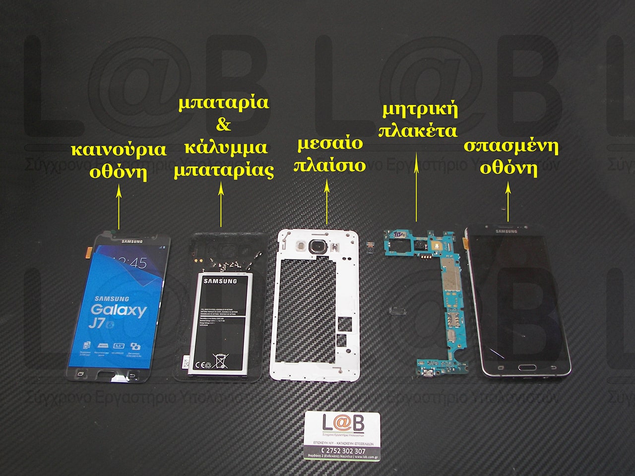 Στο τηλέφωνο Samsung Galaxy J7 (2016) της φωτογραφίας είχε σπάσει η οθόνη μετά από πτώση.